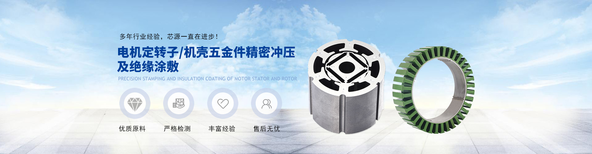 五金沖壓件、電機(jī)定轉(zhuǎn)子鐵芯精密沖壓涂敷、電機(jī)機(jī)殼鉚合精密沖壓、五金件精密沖壓